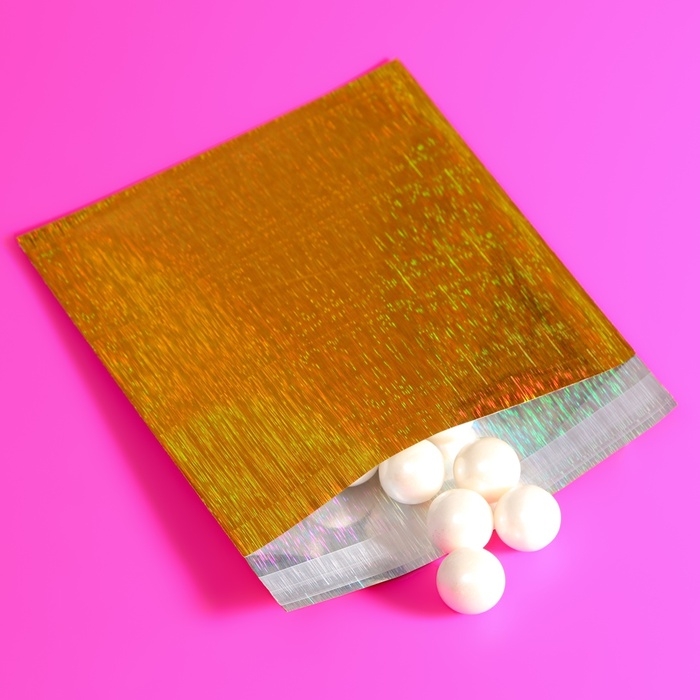 Пакет подарочный голографический с липкой лентой, "Звездное небо", 10x10+2 см набор 50шт