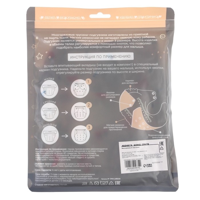 • Подгузник имеет удобный кармашек для вкладыша;