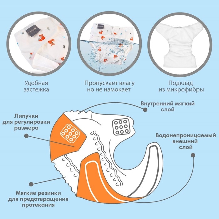 Многоразовый подгузник «Лисички», размер L