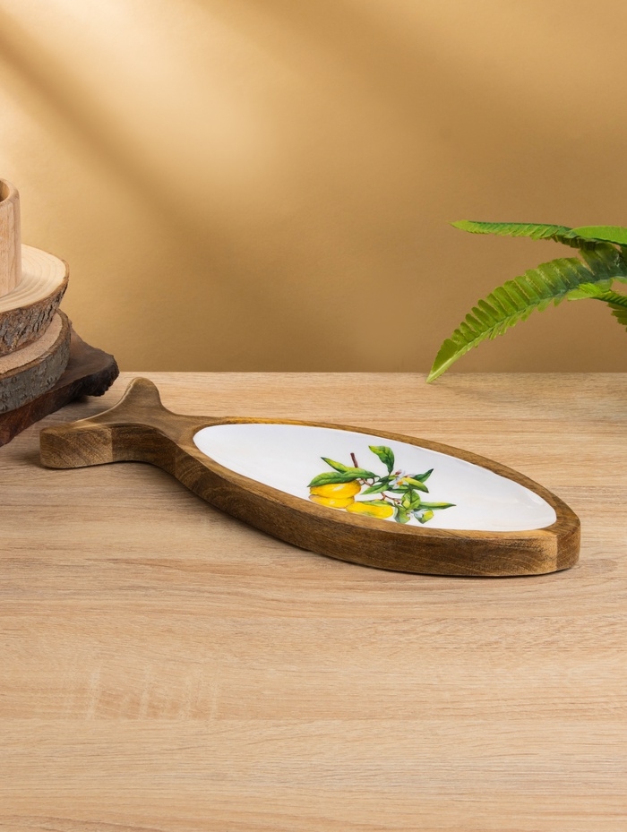 Блюдо в форме рыбки "Лимоны" дерево манго 32х11,5х2 см