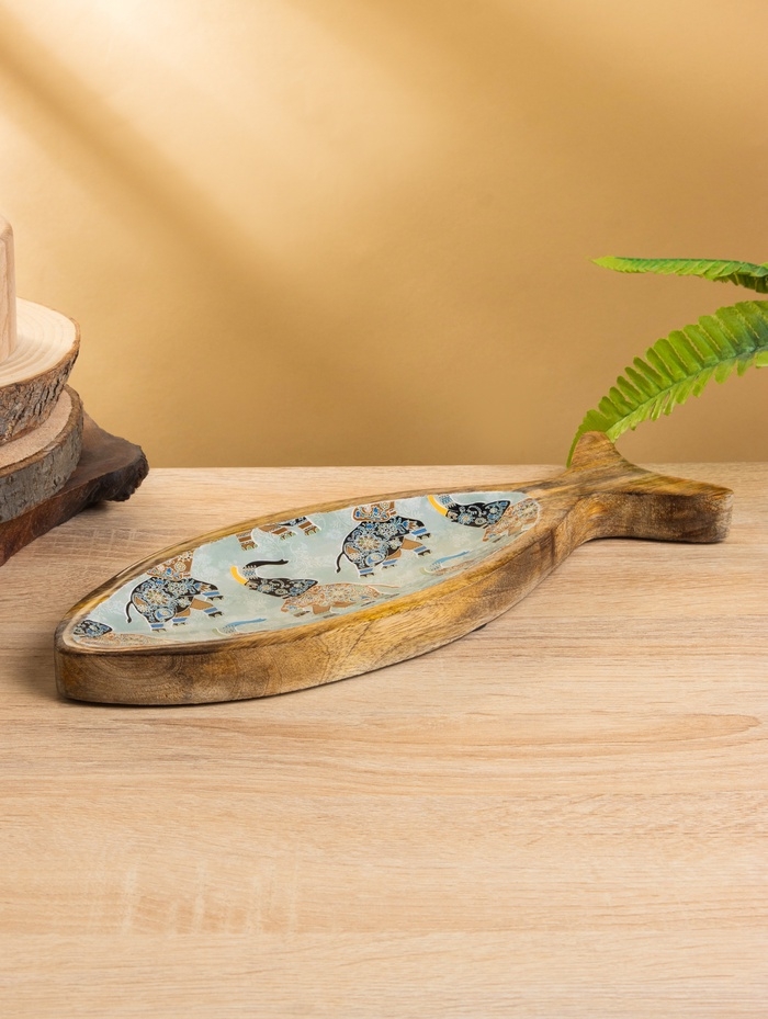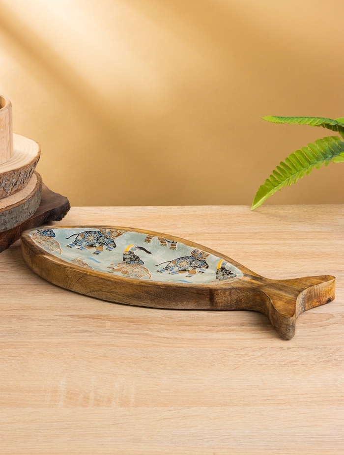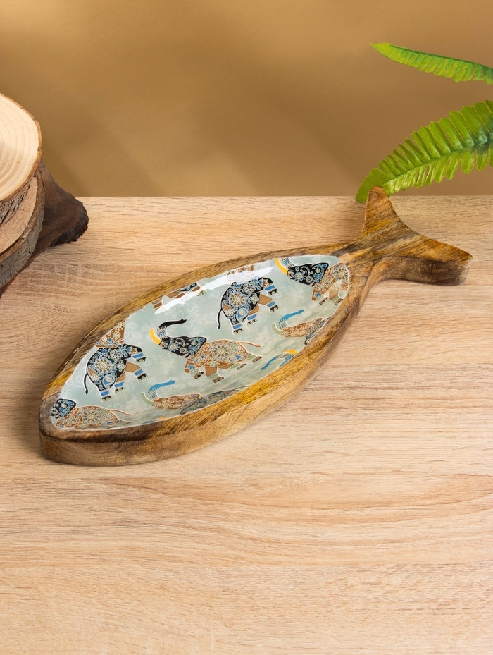 Блюдо в форме рыбки "Мудрый слон" дерево манго 32х11,5х2 см