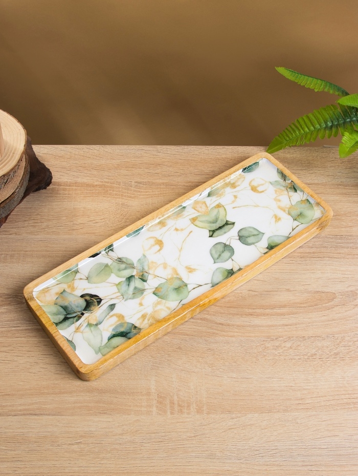Блюдо прямоугольное "Листья" дерево манго 41х15 см