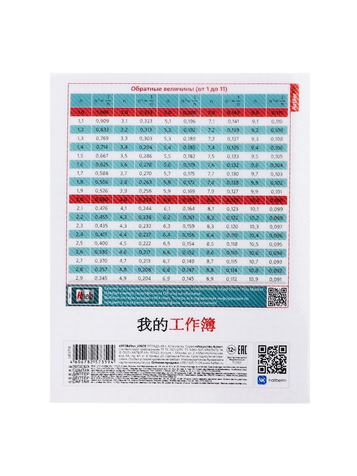 Тетрадь 48 листов в клетку «Искусство Азии» АЛГЕБРА, пластиковая обложка с печатью, тиснение фольгой, с интерактивным справочником, блок офсе...