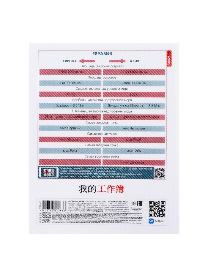 Тетрадь 48 листов в клетку «Искусство Азии» ГЕОГРАФИЯ, пластиковая обложка с печатью, тиснение фольгой, с интерактивным справочником, блок оф...