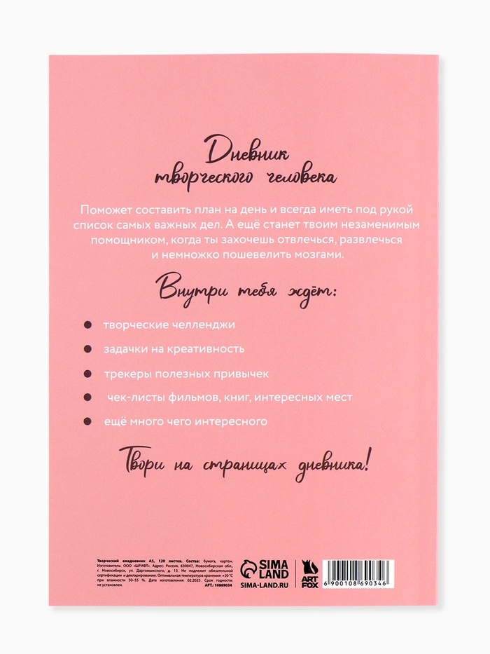 Ежедневник творческого человека с заданиями А5, 120 л. В мягкой обложке "Мечтай"