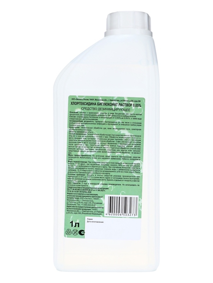 Хлоргексидина биглюконат раствор 0,05% средство дезинфицирующее, 1 л