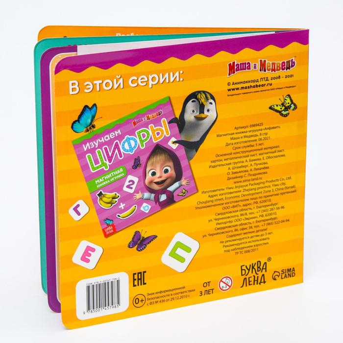 Магнитная книга с заданиями «Алфавит», 8 стр., 47 магнитов, «Маша и Медведь»