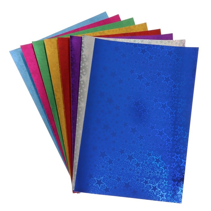 Набор картона голографического формат А4, 8 лист, 8 цвет, плотность 180г/м2 ЗВЕЗДЫ