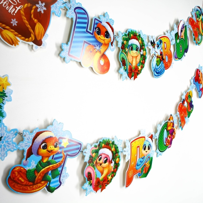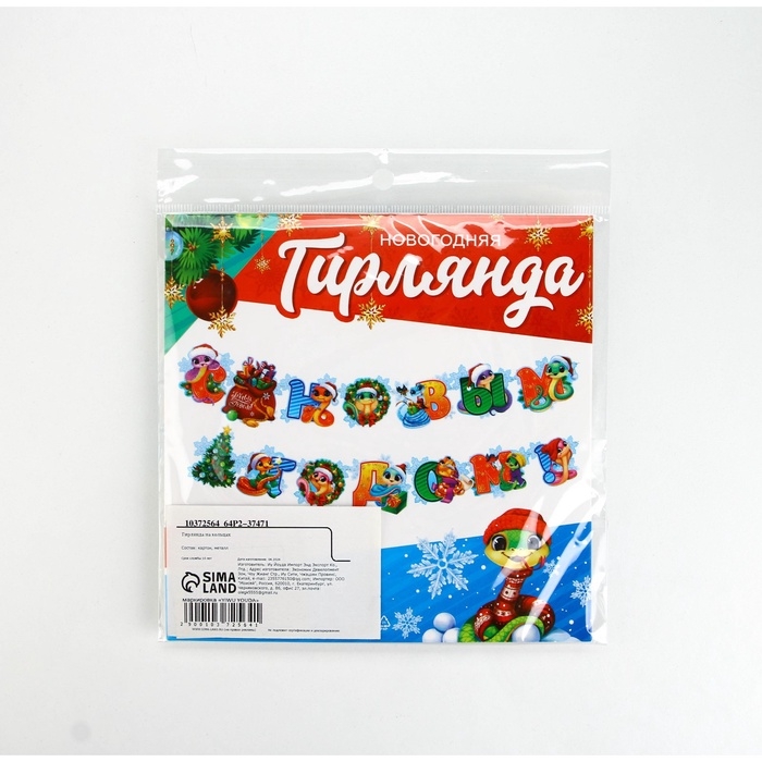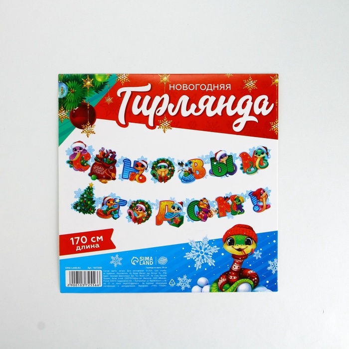 Гирлянда на кольцах "С Новым годом", змейки, дл.170 см