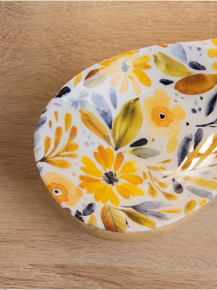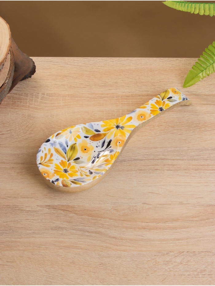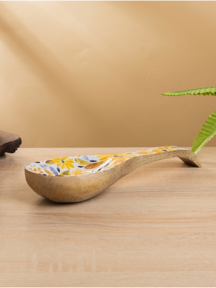 Подставка под ложку «Желтые и синие цветы», 25.5×9×3.8 см, дерево манго