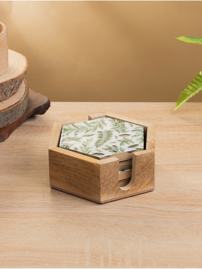 Подставка под горячее (набор 4 шт) "Оливковая ветвь" дерево манго 15х13х5 см