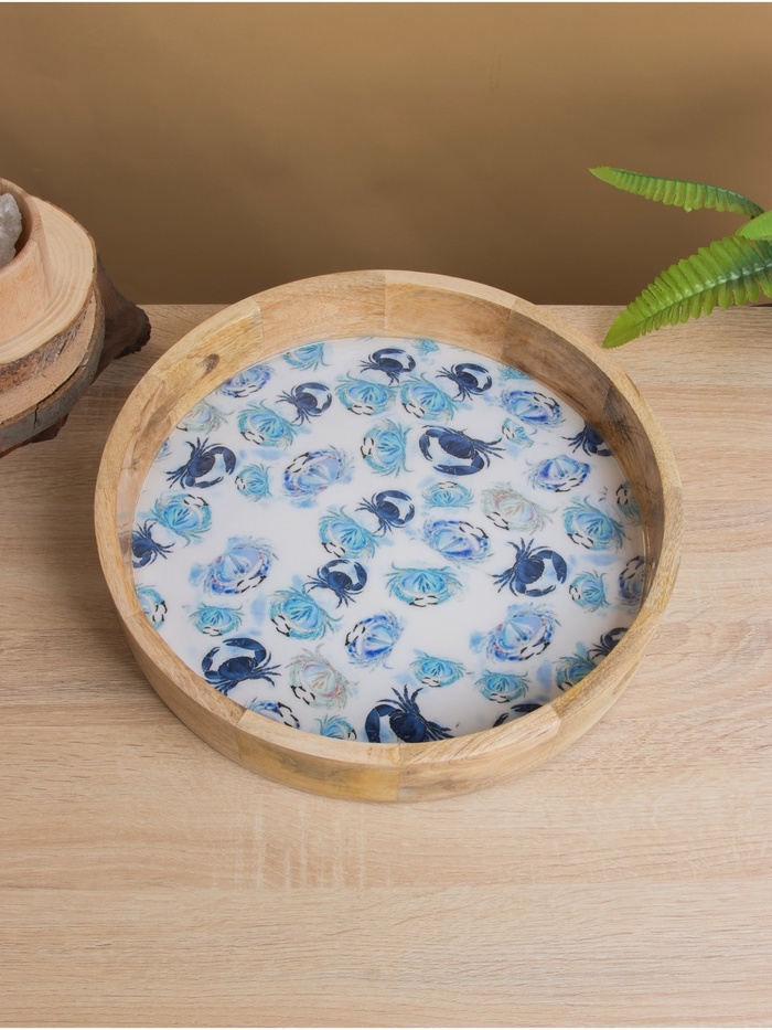 Поднос круглый с бортиками "Крабы" дерево манго 35х35х6,5 см