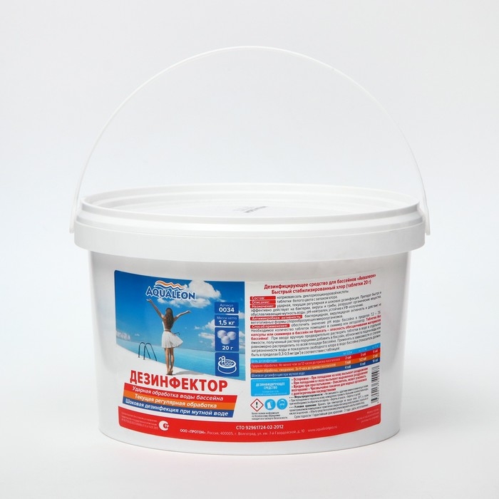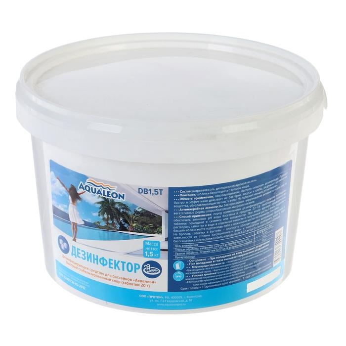 Быстрый стабилизированный хлор Aqualeon таб. 20 гр., 1,5 кг