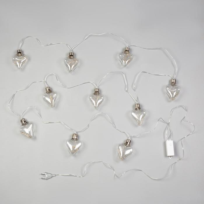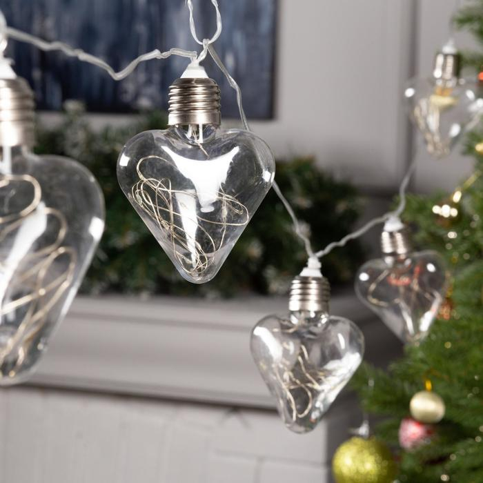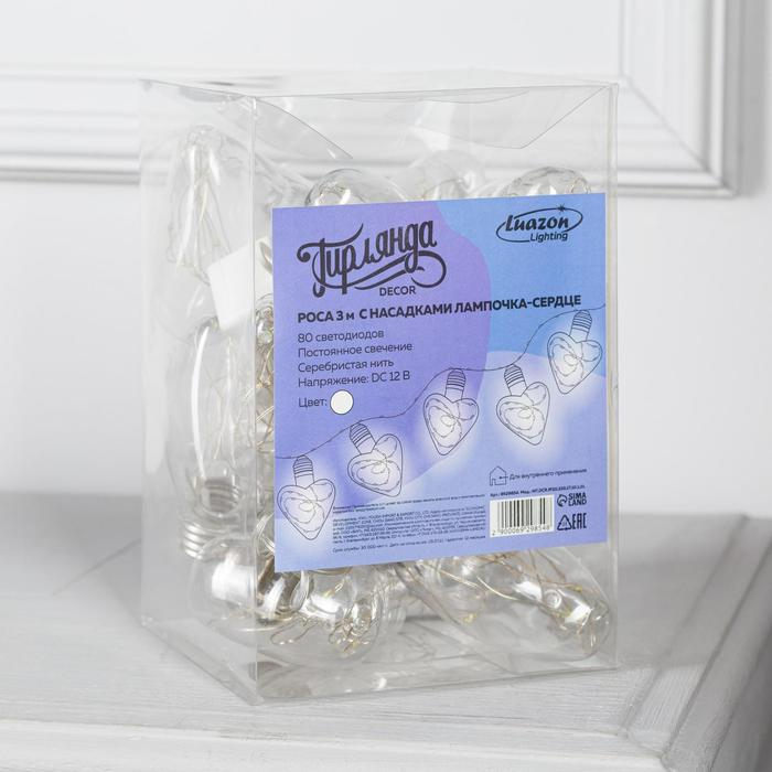 Гирлянда «Нить» 3 м с насадками «Лампочки сердца», IP20, прозрачная нить, 80 LED, свечение белое, 8 режимов, 220 В