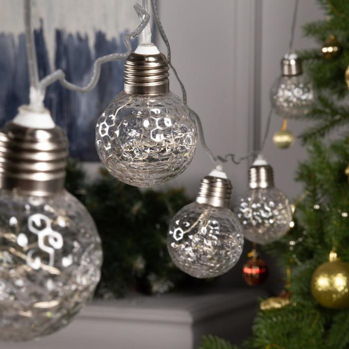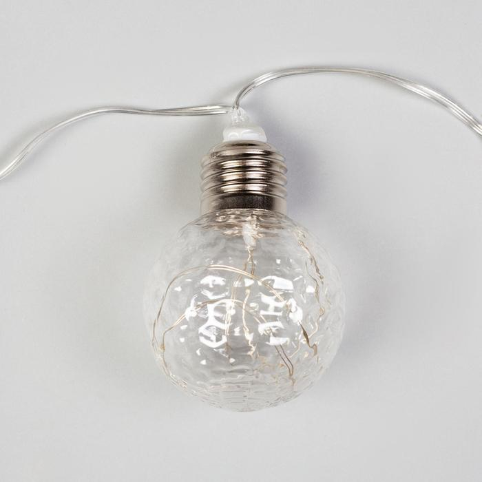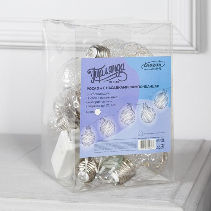 Гирлянда «Нить» 3 м с насадками «Лампочки шары», IP20, прозрачная нить, 80 LED, свечение белое, 8 режимов, 220 В