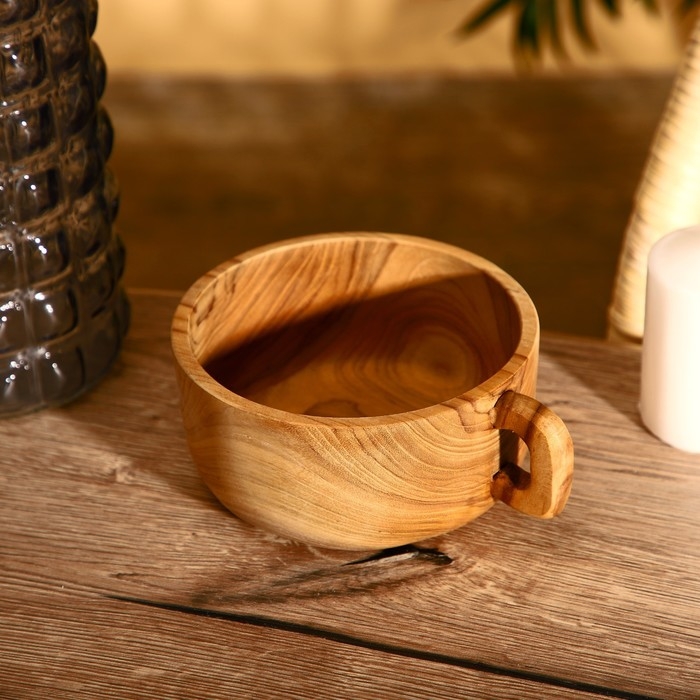 Миска с ручкой 14 х 17 х 7 см, тиковое дерево