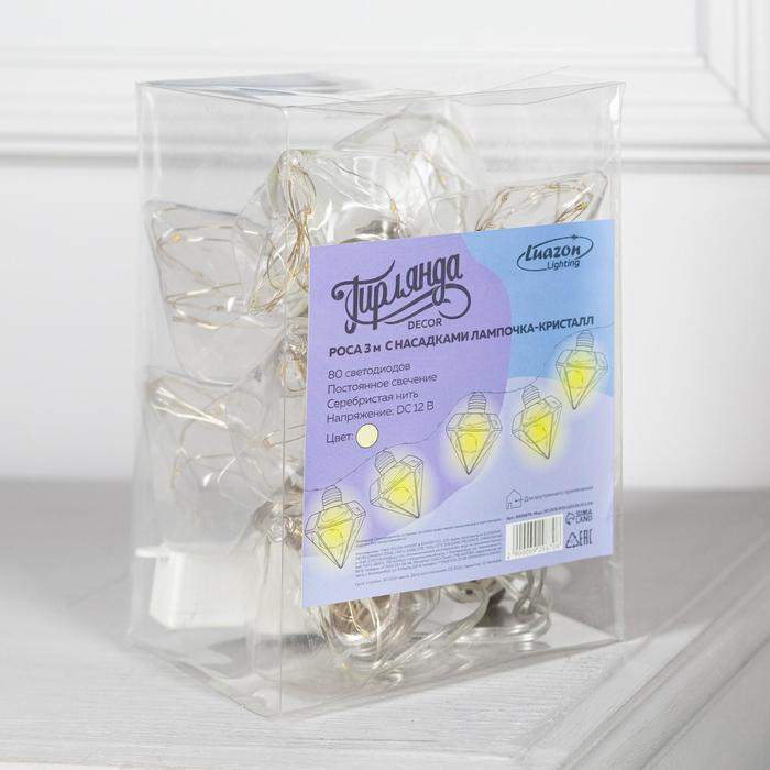 Гирлянда «Нить» 3 м с насадками «Лампочки кристалл», IP20, прозрачная нить, 80 LED, свечение тёплое белое, 8 режимов, 220 В