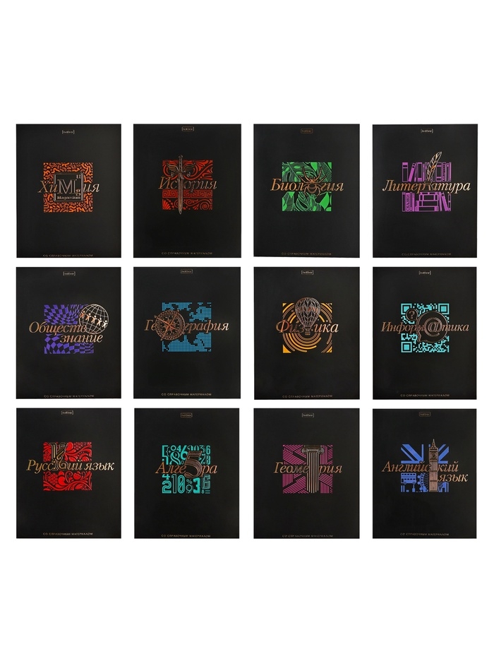 Комплект предметных тетрадей 48 листов, 12 предметов Hatber «Салют предметов», обложка мелованный картон, матовая ламинация, 3D-лак, тиснение фоль�...
