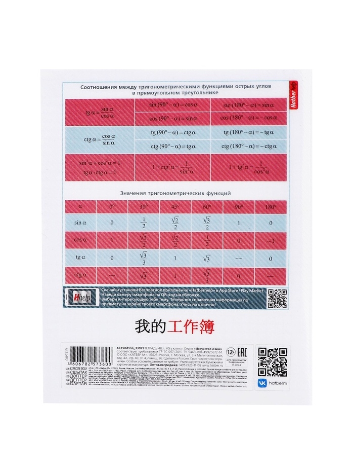 Тетрадь 48 листов в клетку «Искусство Азии» ГЕОМЕТРИЯ, пластиковая обложка с печатью, тиснение фольгой, с интерактивным справочником, блок оф...