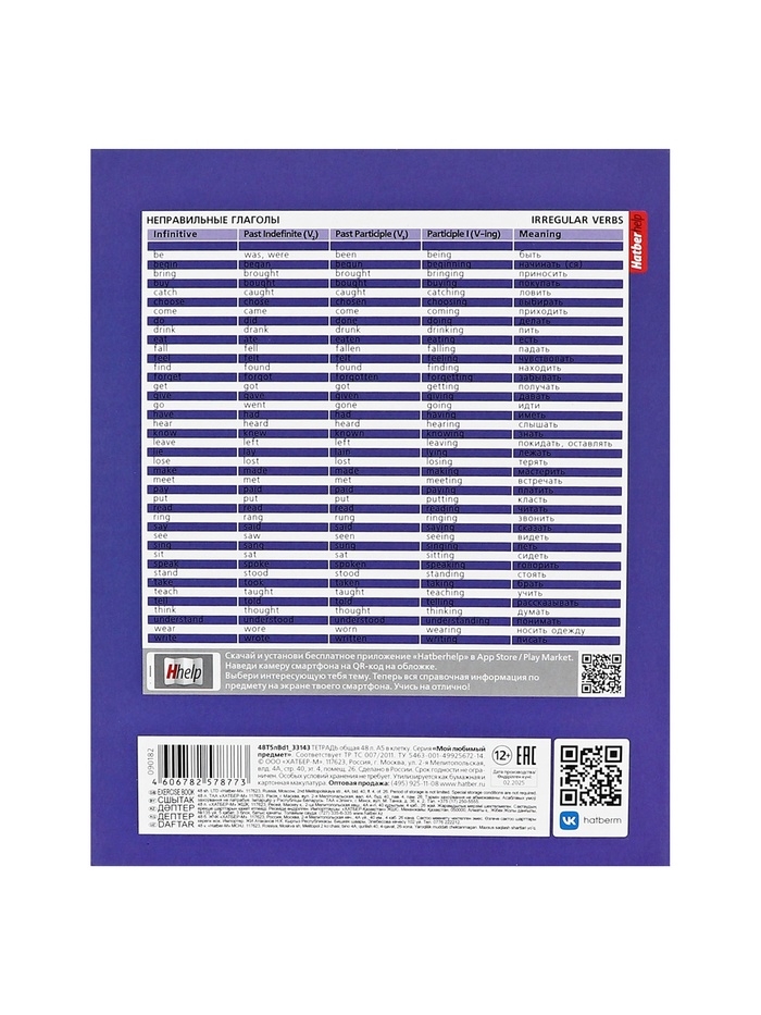 Тетрадь 48 листов в клетку «Мой любимый предмет» АНГЛИЙСКИЙ ЯЗЫК, обложка мелованный картон, Soft-touch, с интерактивным справочником, блок офсет