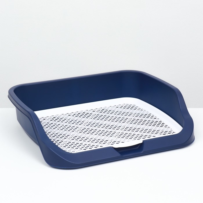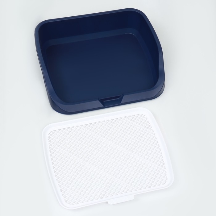 Туалет для собак 46,5 х 35,5 х 5,5 см, со съёмным бортом, решеткой и столбиком, голубой
