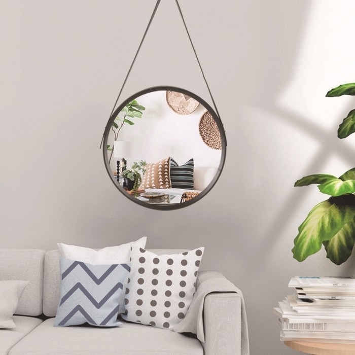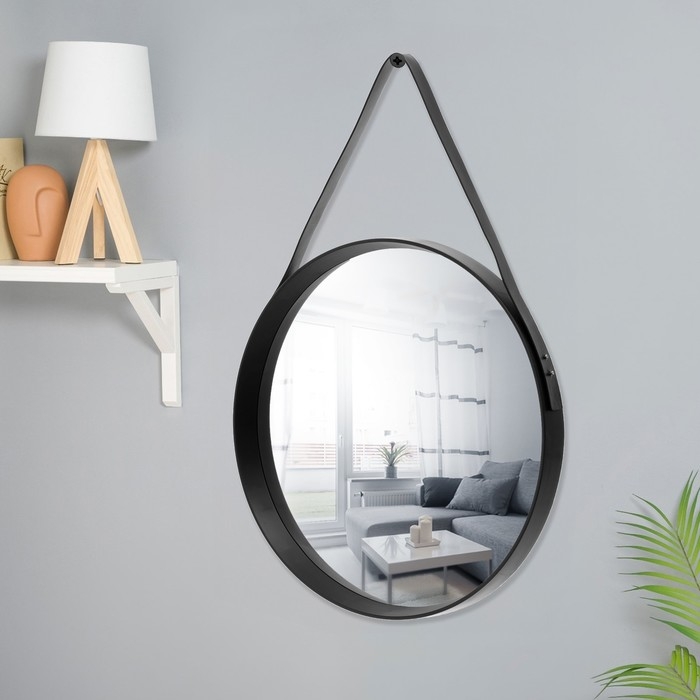 Зеркало настенное Black Leather, круглое, d = 52 см, на кожаном ремне