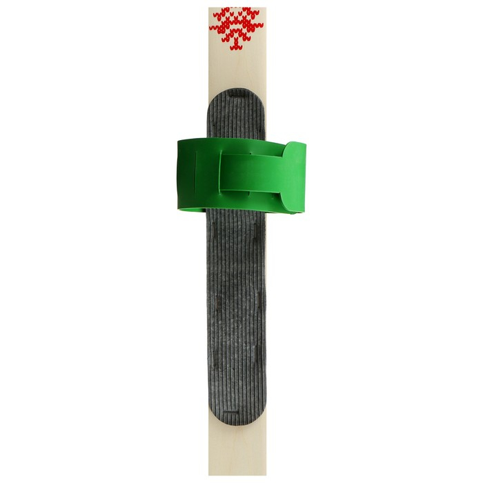 Универсальные крепления представлены в виде морозостойкого пластикового ремешка с регулировкой. Резиновые накладки обеспечивают сцепление с обувью и препятствуют налипанию снега. На нижней поверхности лыжи есть продольная канавка для уменьшения бокового скольжения.