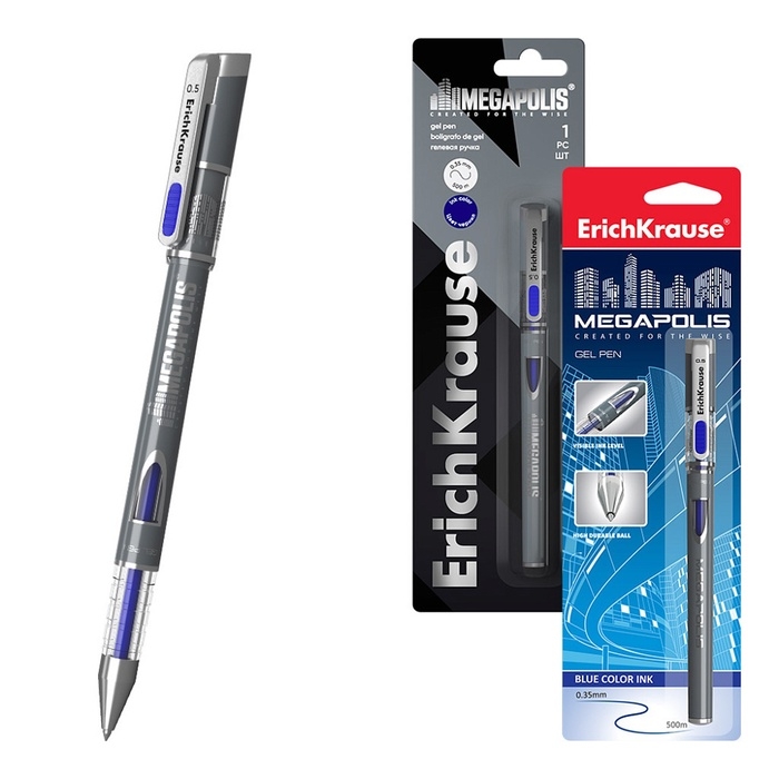 Ручка гелевая MEGAPOLIS Gel, узел 0.5 мм, чернила синие, длина линии письма 500 метров, в блистере