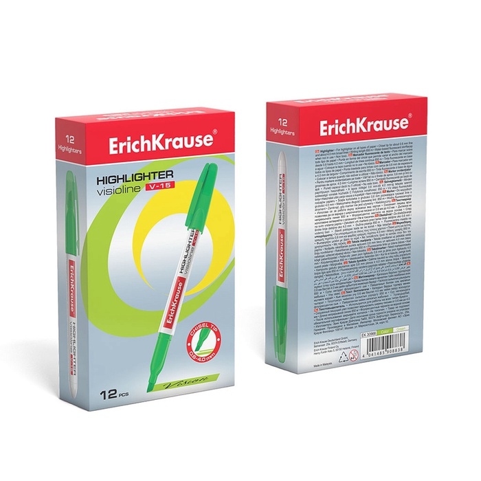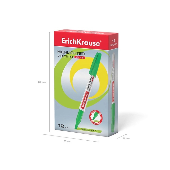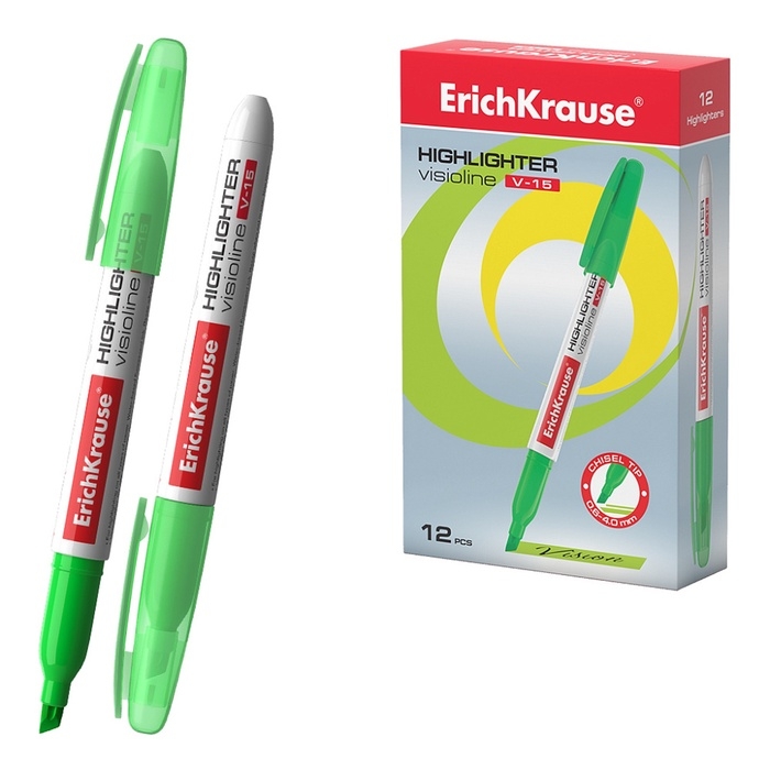 Маркер текстовыделитель 0.6-4.0 мм ErichKrause V-15 зеленый, флуоресцентные чернила на водной основе