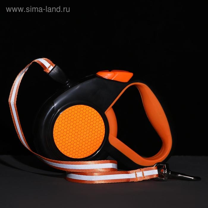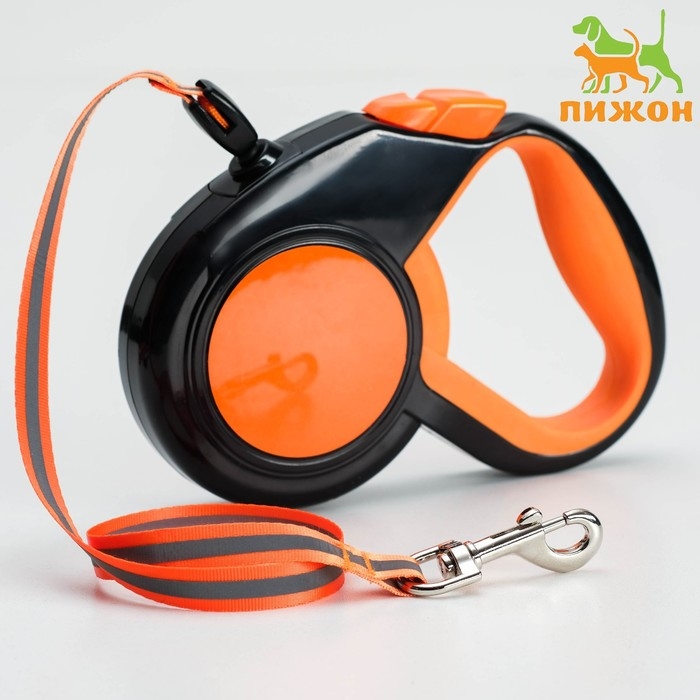 Рулетка "Пижон" светоотражающая, 5 м, до 25 кг, трос, прорезиненная ручка, оранжевая