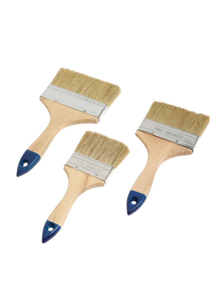 Набор кистей ТУНДРА, натуральная щетина, деревянная рукоятка, 3-4-5" (75, 100, 125 мм),3 шт.