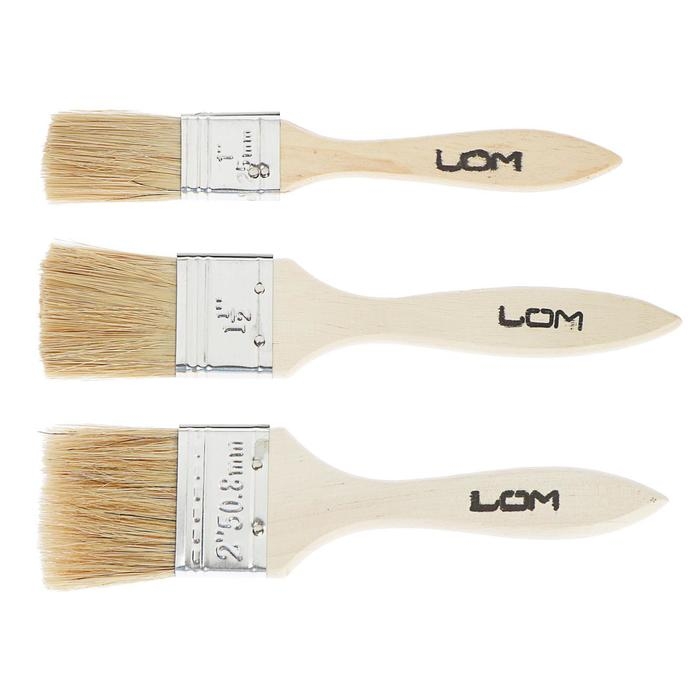 Набор кистей ЛОМ, натуральная щетина, деревянная рукоятка, 1-1.5-2", 25, 38, 50 мм
