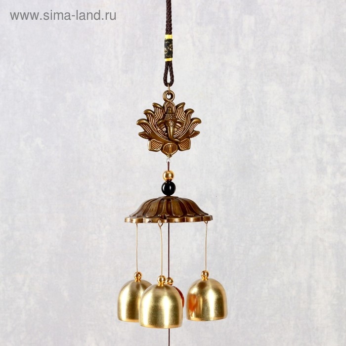 Музыка ветра металл "Ганеша в лотосе" 3 колокольчика 40 см