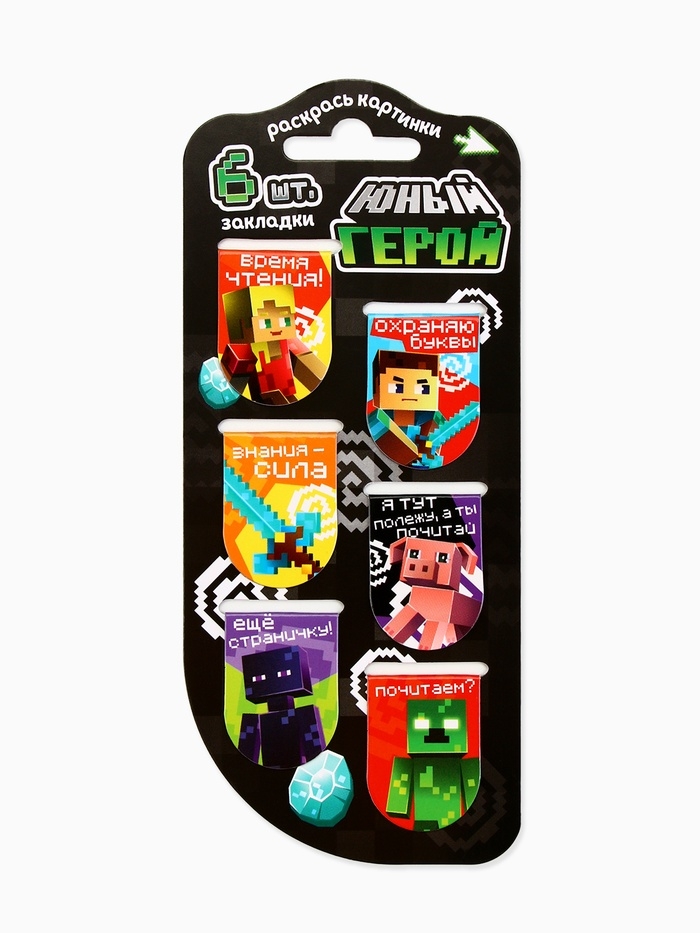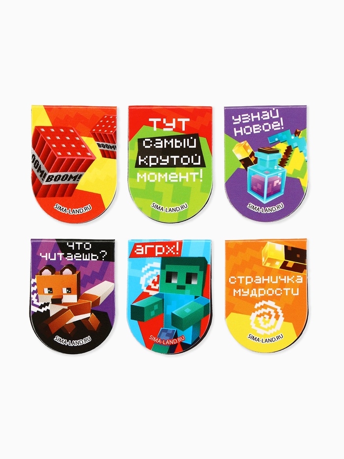 Закладки магнитные для книг, 6 шт "Пиксели"