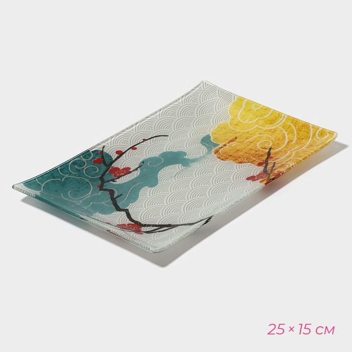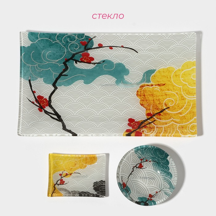 Набор для суши из стекла Доляна «Абстракция», 3 предмета: соусники 8×2 см, 8×6 см, подставка 25×15×2 см