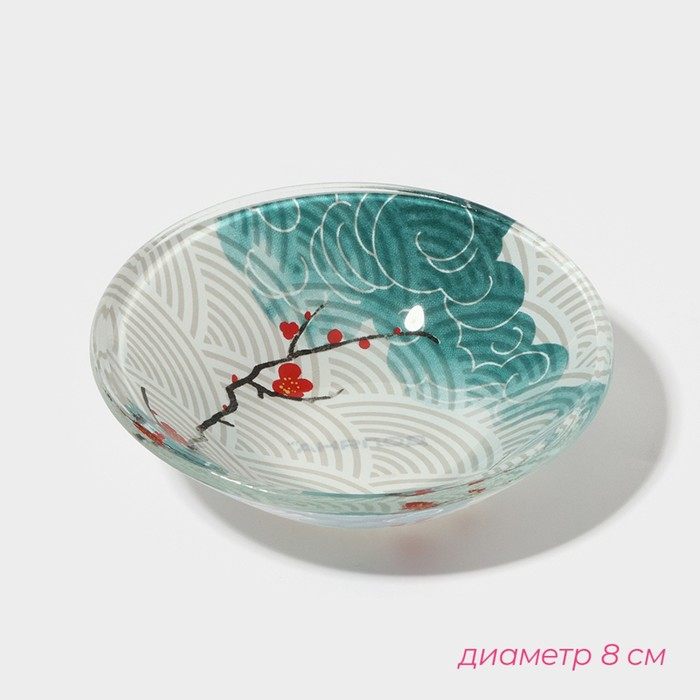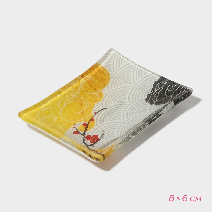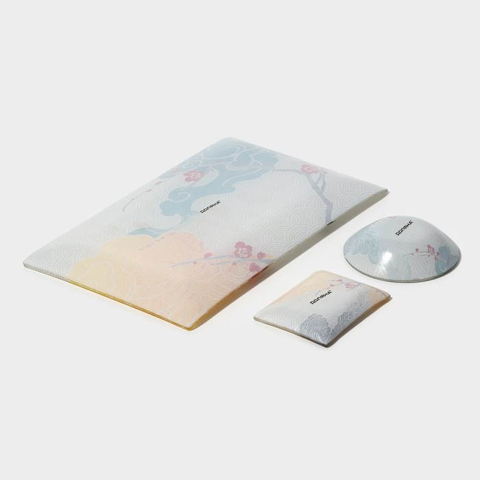 Набор для суши из стекла Доляна «Фудзияма», 3 предмета: соусники 8×2 см, 8×6 см, подставка 25×15×2 см