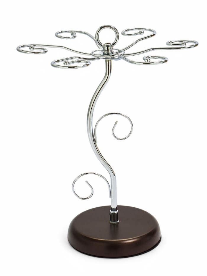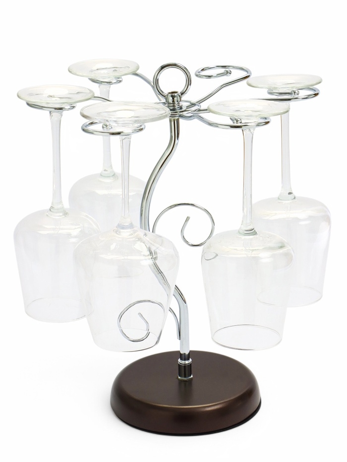 Подставка для бокалов, серебристая с коричневым основанием, на 6 бокалов