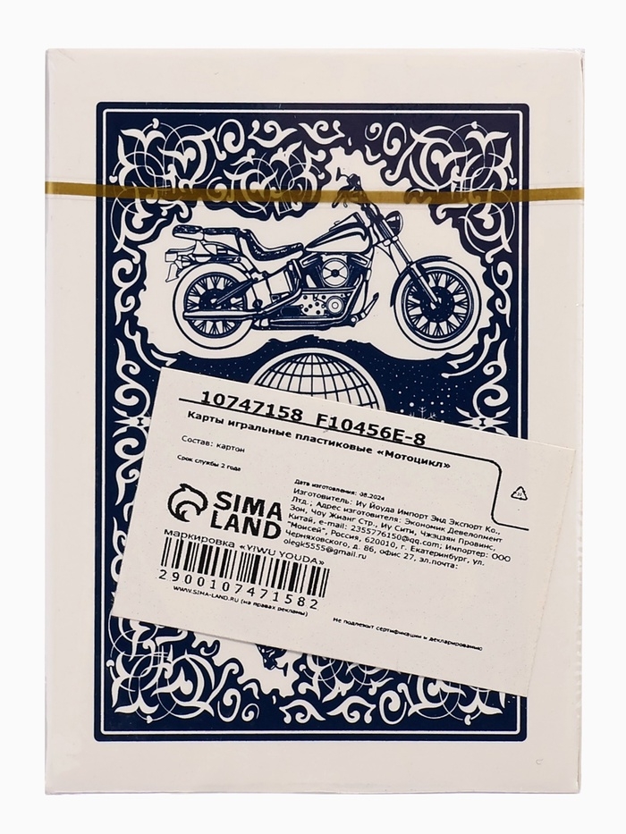 Карты игральные 54 шт "Мотоцикл", карта 6.2 х 8.7 см, синяя рубашка, 280 г