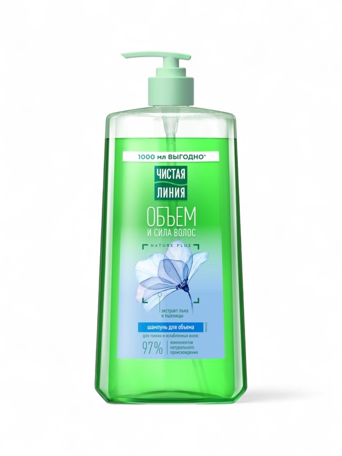 Шампунь для волос Чистая линия «объем и сила» экстракт льна и пшеницы, 1000 мл