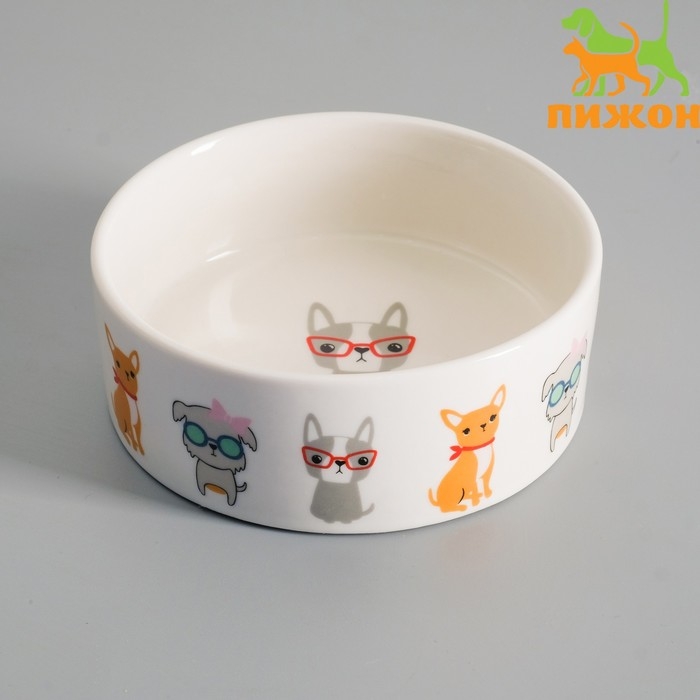 Миска керамическая "Важный пес" 250мл, 11,5 х 5 см, белая