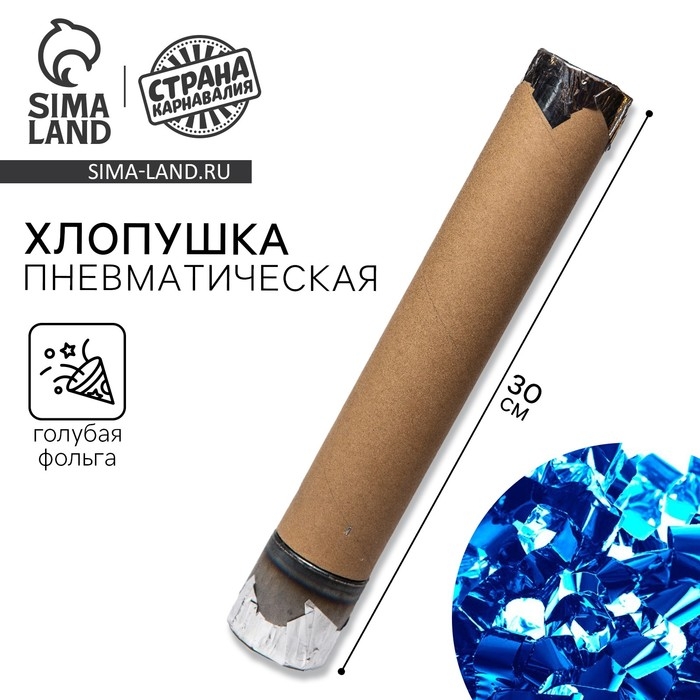 Гендер-пати. Хлопушка пневматическая с собственным дизайном «Голубая фольга», 30 см, для мальчика