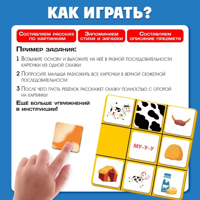 - Разложите на основе карточки, составляющие один рассказ. Для начала вы можете выбрать знакомый ребёнку сюжет сказки «Репка».