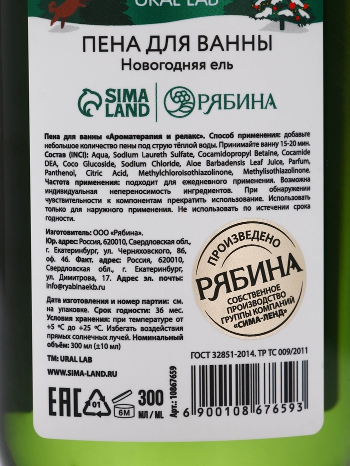 Ural Lab Winter Melody Пена для ванны One, two, Christmas tree, 300 мл, новогодняя ель