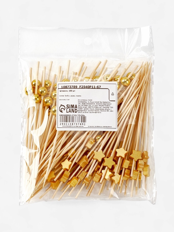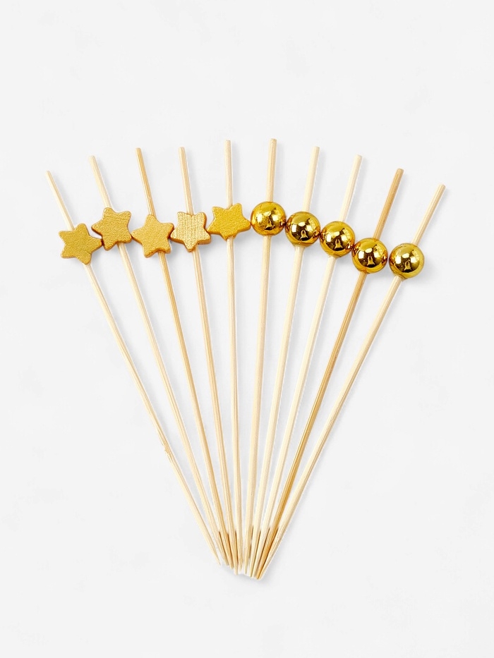 Шпажки для канапе «Звезды и Бусины» бамбук, цвет золото, 100 шт.