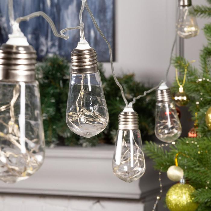 Гирлянда «Нить» 3 м с насадками «Лампа», IP20, прозрачная нить, 80 LED, свечение тёплое белое, 8 режимов, 220 В
