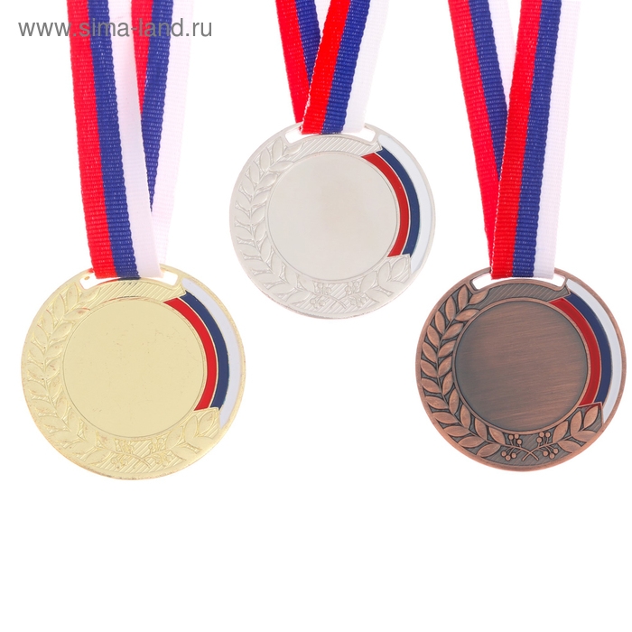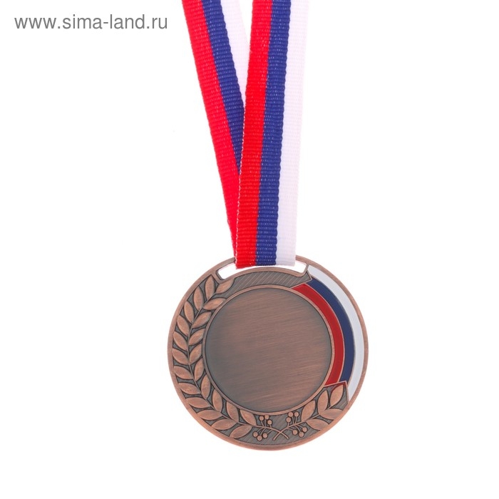 Медаль под нанесение «Лавры», ⌀ 5 см., триколор. Цвет бронз. С лентой