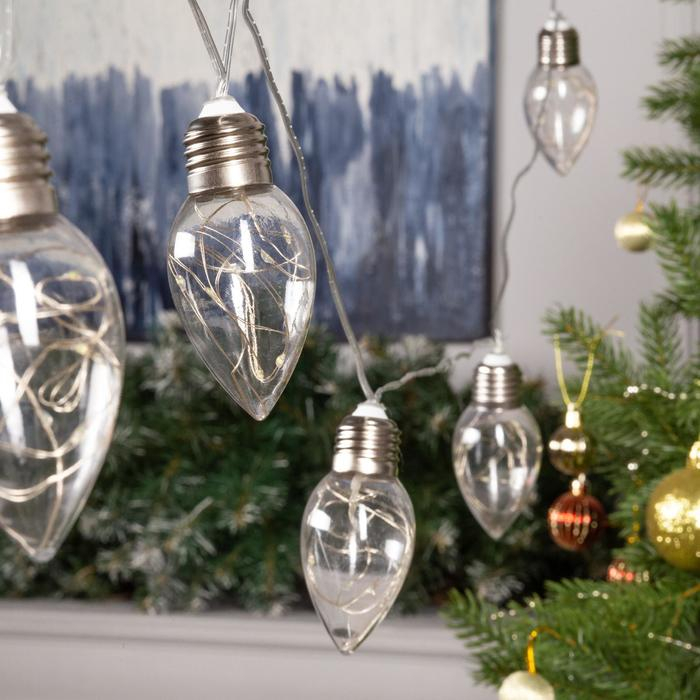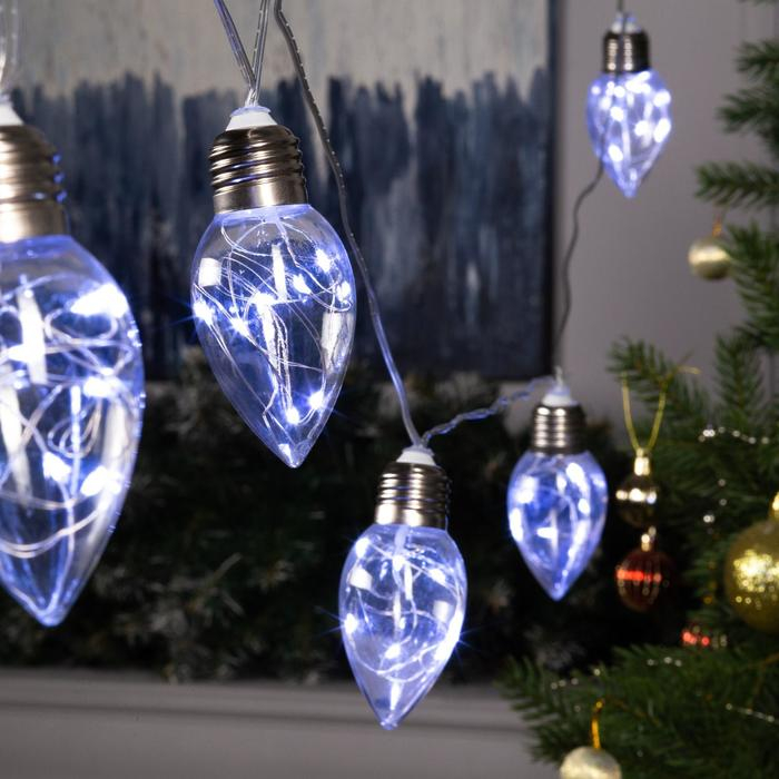 Гирлянда «Нить» 3 м с насадками «Лампочки капля», IP20, прозрачная нить, 80 LED, свечение белое, 8 режимов, 220 В