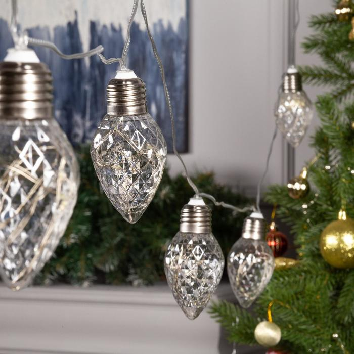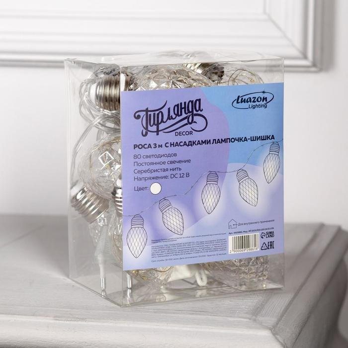 Гирлянда «Нить» 3 м с насадками «Лампочки шишки», IP20, прозрачная нить, 80 LED, свечение белое, 8 режимов, 220 В