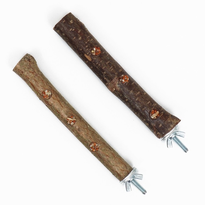 Длина жердочки составляет 17 см, а диаметр — 1,8-2 см. Это оптимальный размер для большинства видов попугаев.