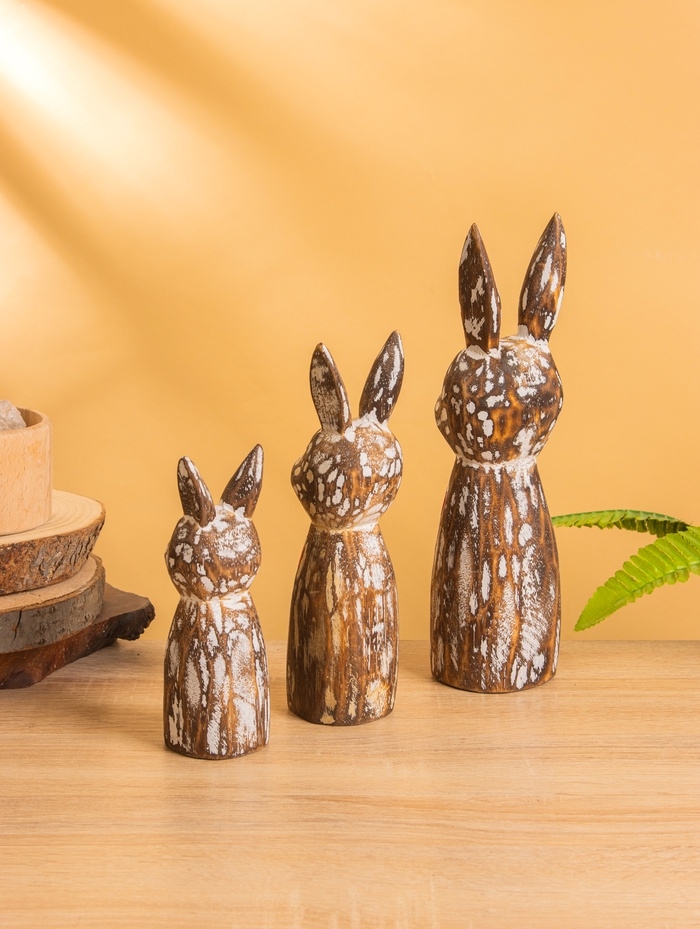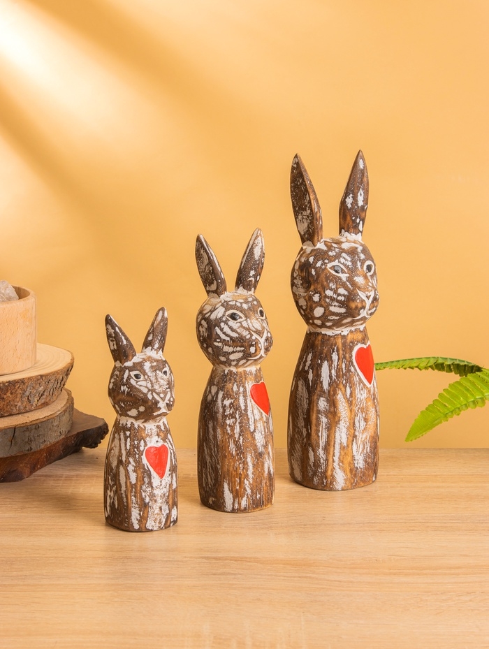 Набор сувенирный "Зайцы с сердечком" дерево, h - 25,20 и 15 см, цв. коричневый